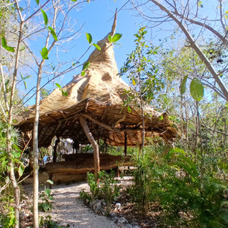 From there, I cruised back to Tulum to the beach zone to explore Sfer Ik, the younger sibling of Azulik’s grand City of the Arts I had explored yesterday. If that place was a dreamscape, this was its intimate counterpart - smaller, but breathtaking in its detail. Inside, sculpted wood twisted like flowing rivers, polished stone glowed underfoot, and the air hummed with a sense of reverence. Walking barefoot, every texture pressed into your skin, grounding you in the art itself.